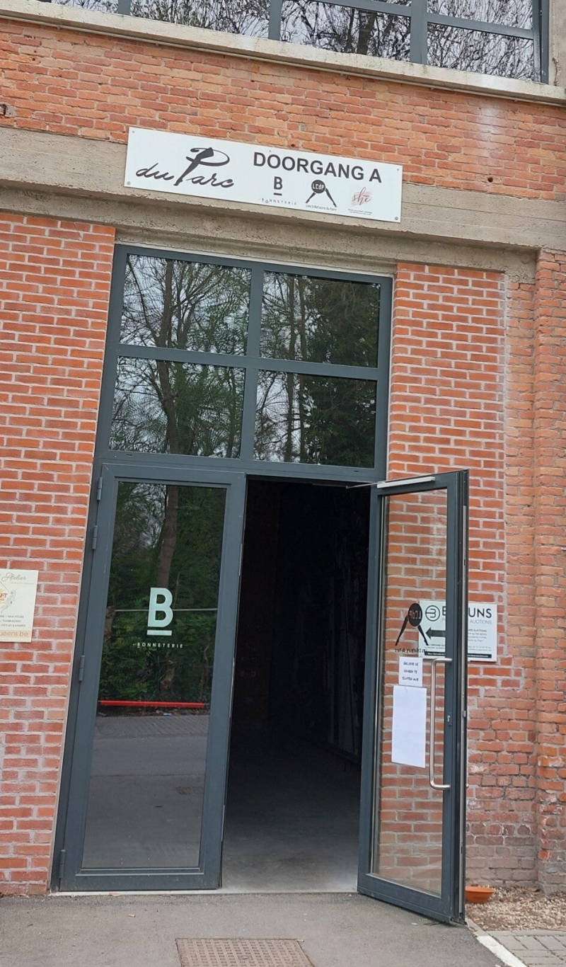 Parking tussen het gebouw en het park van Aalst. De slagboom gaat automatisch open en parkeren is gratis.